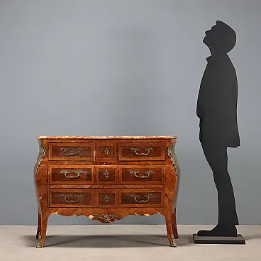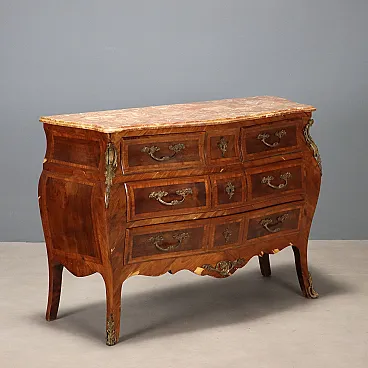Comò in stile tardo barocco lastronato in noce, primo '900