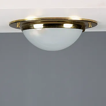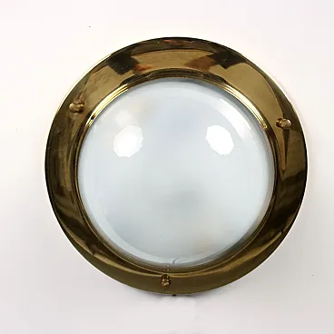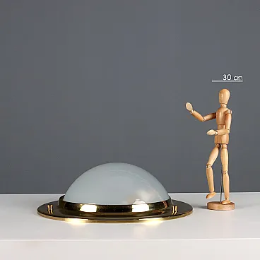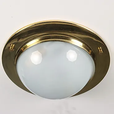 Lampada in metallo ottonato e semisfera in vetro, '900