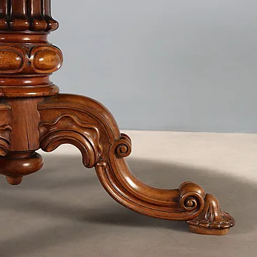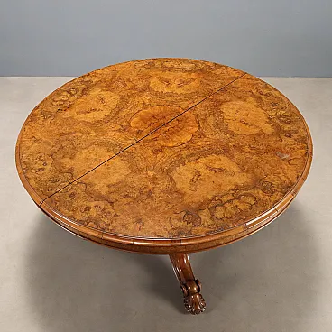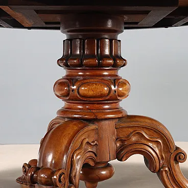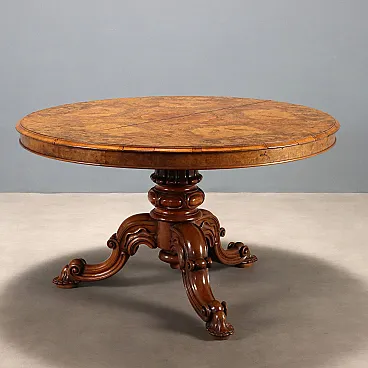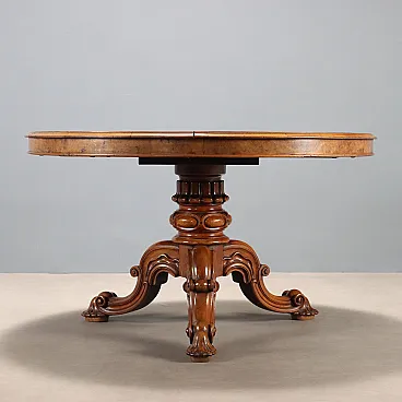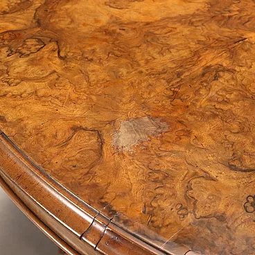 Tavolo in noce con piano impiallacciato in radica di noce, tardo '800