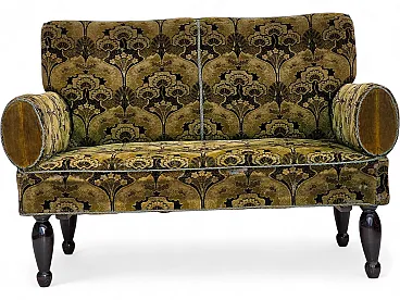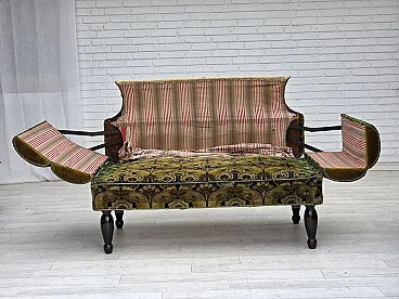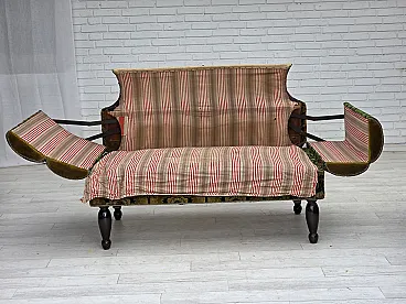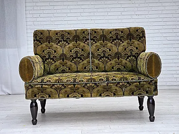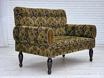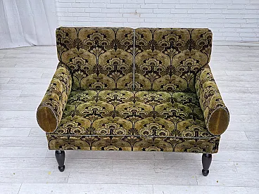 Divano danese 2 posti con braccioli ribaltabili, velluto, anni '30