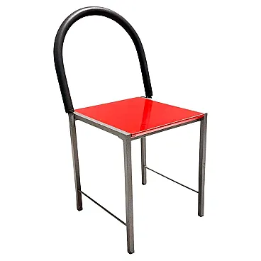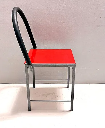 Ettore Sottsass style Red Side Chair, Laminate & Metal, Italy, 1980s