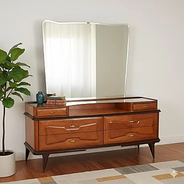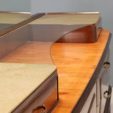 Mobile con impiallacciatura di legno esotico e piano in vetro, '900