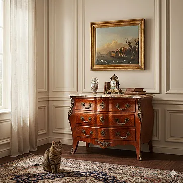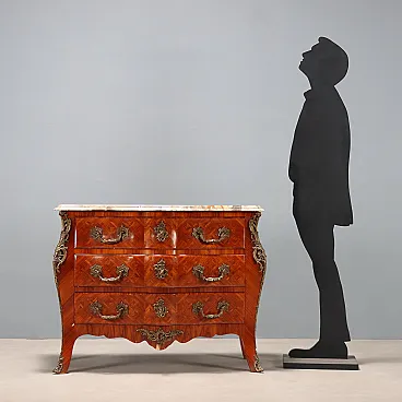 Cassettone tardo barocco impiallacciato in palissandro, metà '900