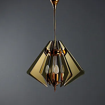Lampada a forma di diamante con struttura in ottone, '900