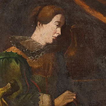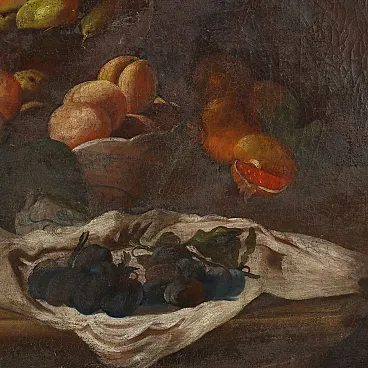 Bancarella di frutta con figura, olio su tela, '700