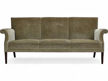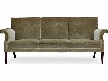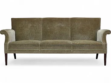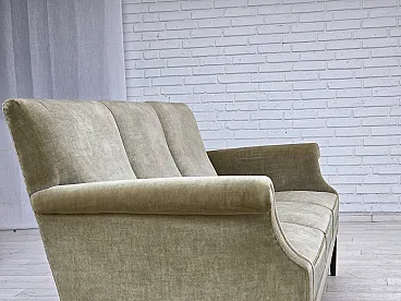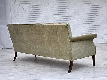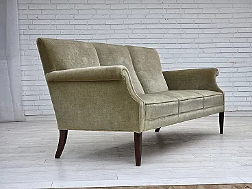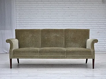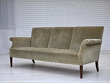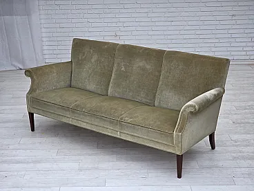 Divano danese a 3 posti, in velluto verde chiaro, anni '60