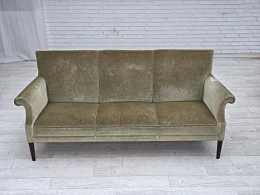 Divano danese a 3 posti, in velluto verde chiaro, anni '60 1