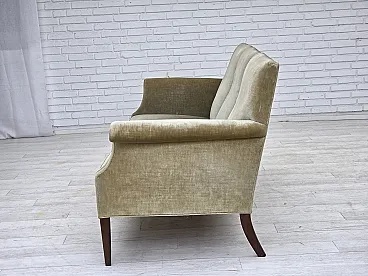 Divano danese a 3 posti, in velluto verde chiaro, anni '60 2