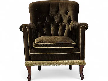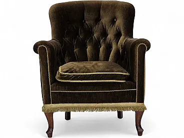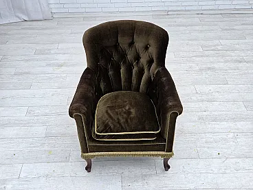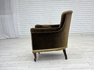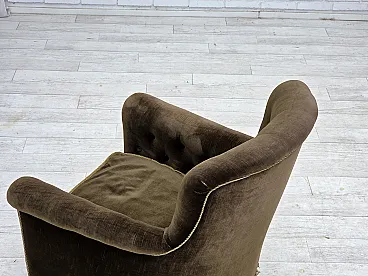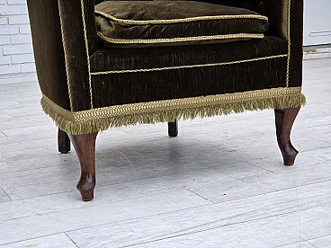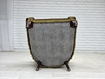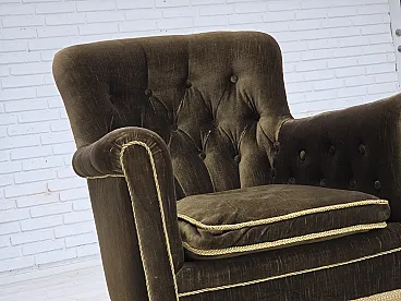 Poltrona scandinava, velluto verde, legno di frassino, anni '50
