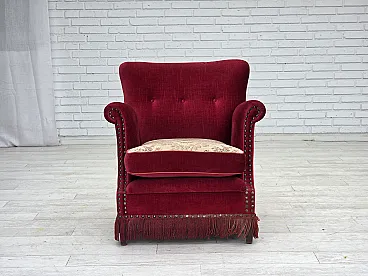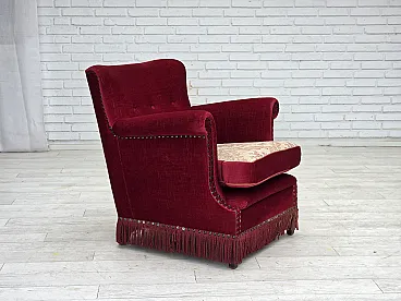 Poltrona danese, velluto rosso, in frassino, anni '70 1