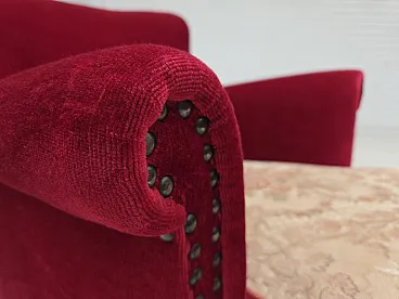 Poltrona danese, velluto rosso, in frassino, anni '70 10