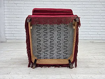 Poltrona danese, velluto rosso, in frassino, anni '70 12