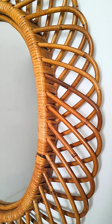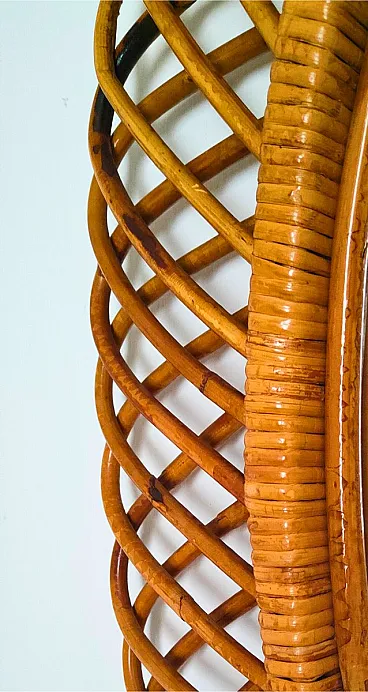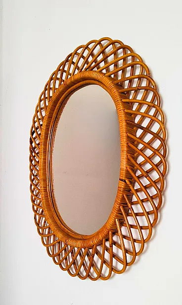 Specchio da parete ovale in vimini e bambù, anni '60