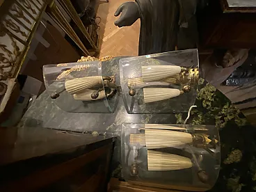 3 Applique da parete Gio Ponti in ottone con paralume in vetro