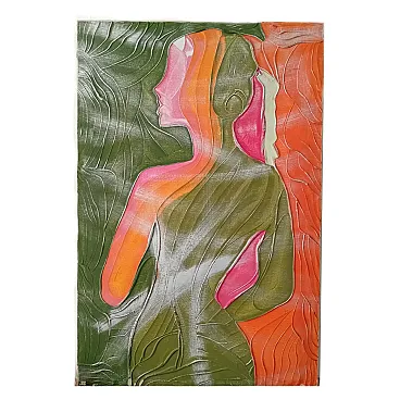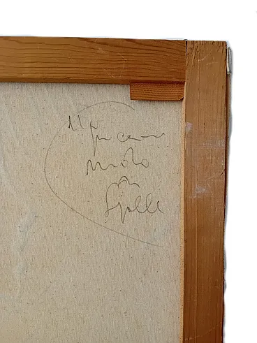 Olio su tela di Gianni Gentile Uguccione degli anni '70. Nudo da dietro. 60 x 90 centimetri. In buone condizioni. Alcuni segni di sfaldamento dell'olio.