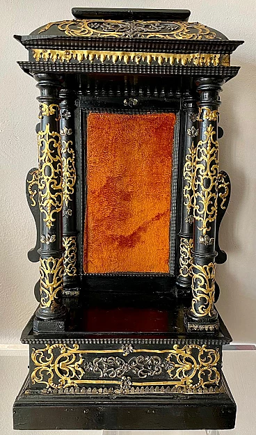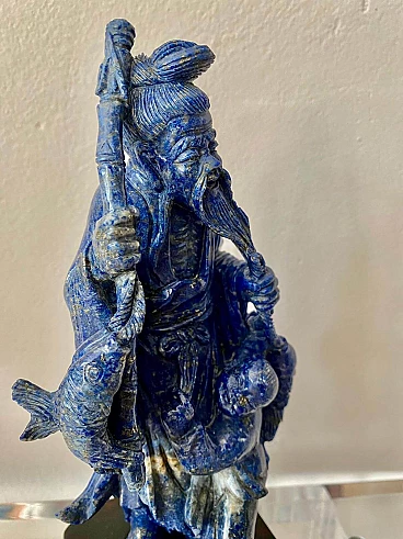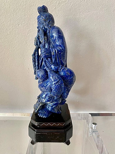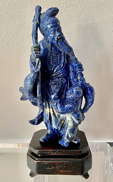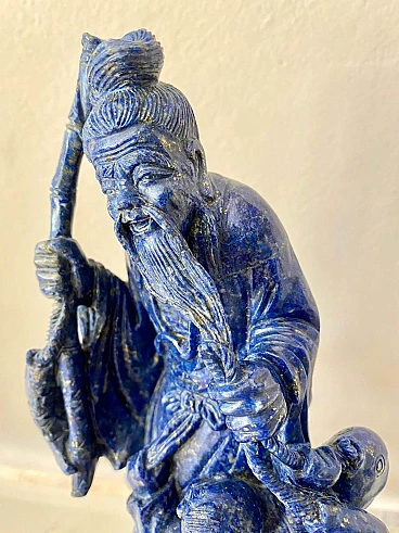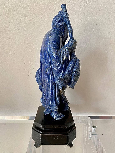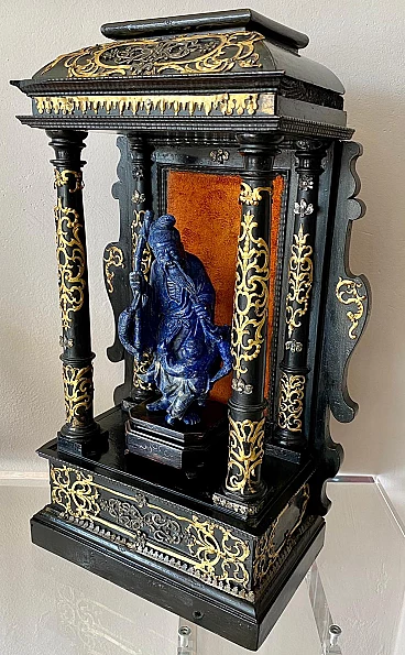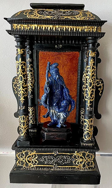 Scultura di saggio in lapislazzulo, epoca Liberty, montata su antico tempietto barocco, primi '900