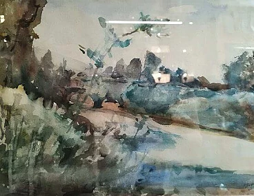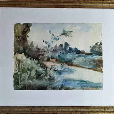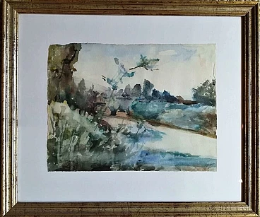 Giuseppe Regazzi, acquerello con Paesaggio fluviale, anni '30