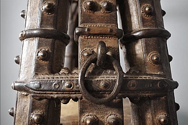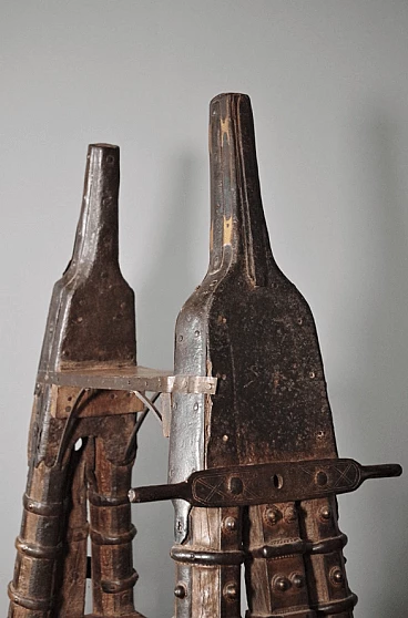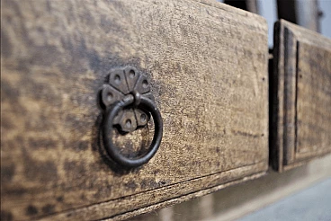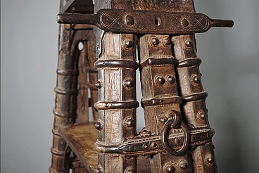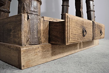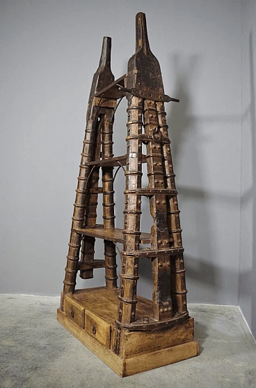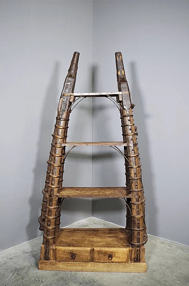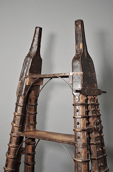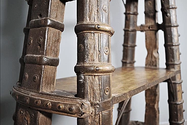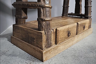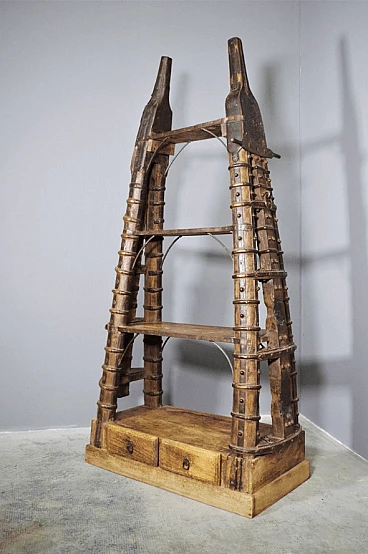 Libreria in legno di teak indiano recuperata da un antico carro, anni '80