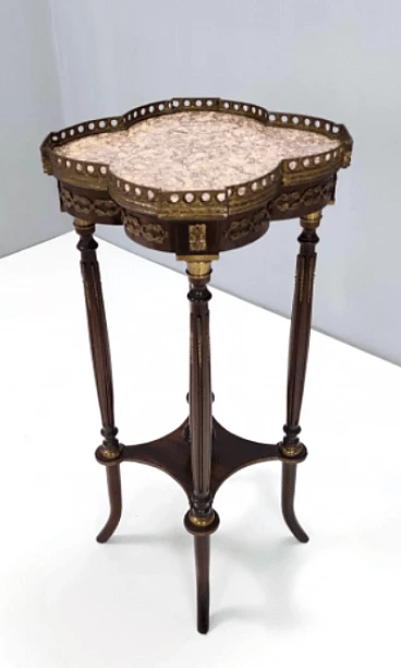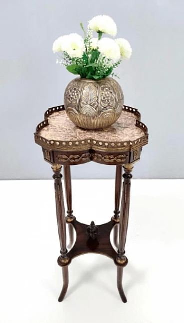 Gueridon in faggio ebanizzato con piano in marmo broccatello, anni '60