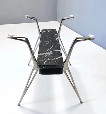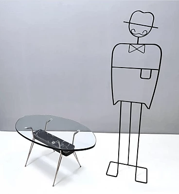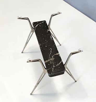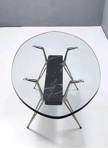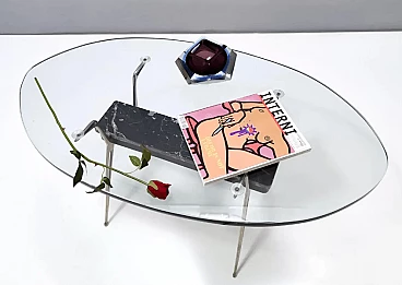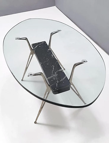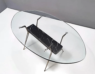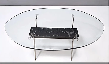 Tavolino ovale in vetro con marmo Portoro, anni '50