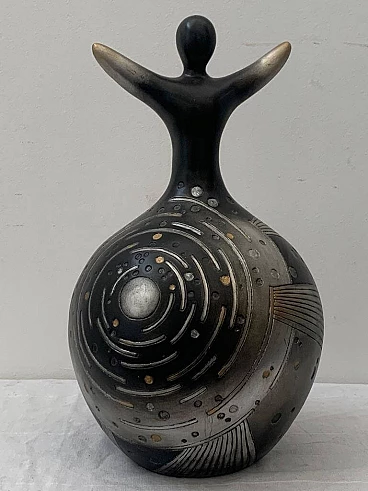Scultura in resina scolpita finita in argento patinato per Lam Lee Group, anni '90
