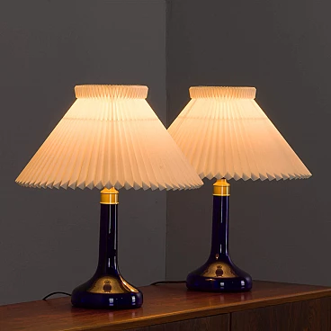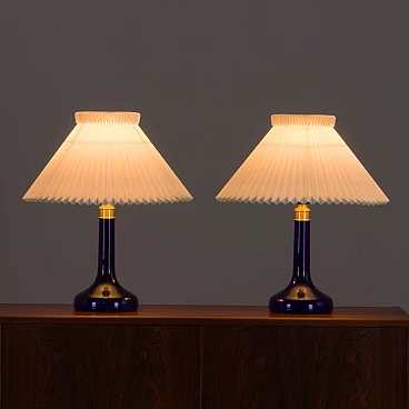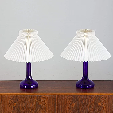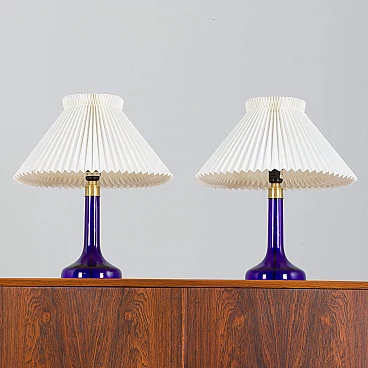 Coppia di lampade da tavolo blu intenso di Holmegaard per Le Klint, anni '70