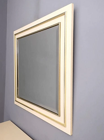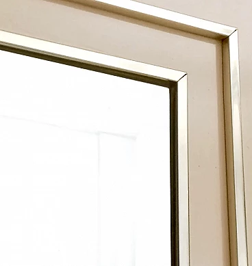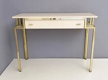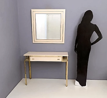 Consolle in formica rosa pallido e ottone con specchio a parete, anni '70