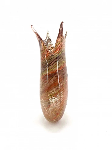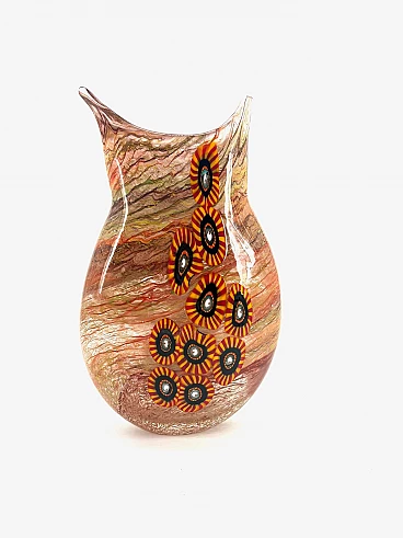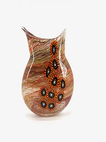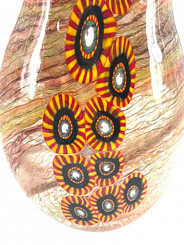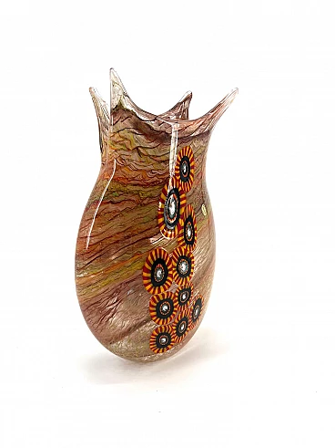 Vaso in vetro di Murano con murrine a strisce gialle, rosse e nere