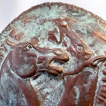 Scultura da parete Cavalli in rame sbalzato di Del Grande per Laurana, 1973