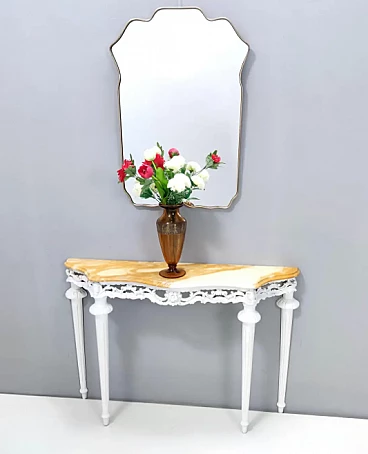 Consolle in faggio laccato con piano in marmo giallo, anni '60