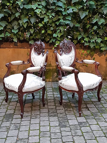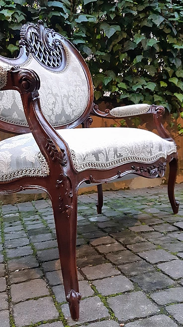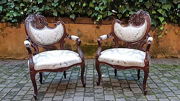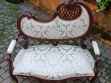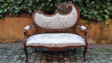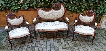Divano e coppia di poltrone Liberty in mogano, inizio '900