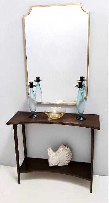 Tavolo consolle in faggio ebanizzato con ripiano inferiore, anni '80