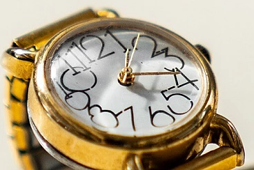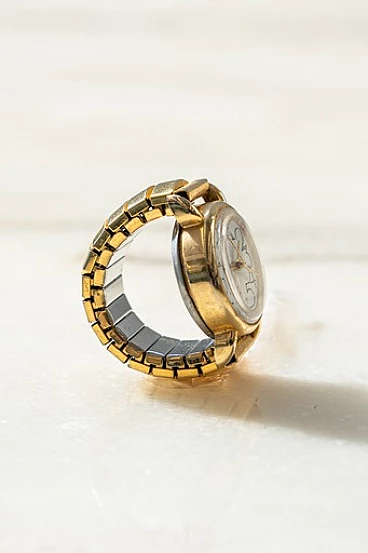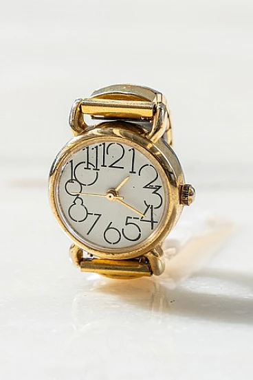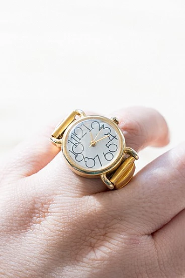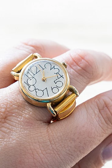 Anello con orologio in metallo dorato, anni '70
