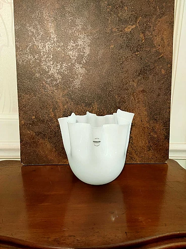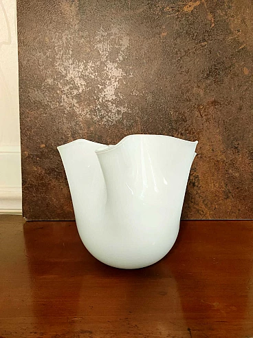 3 Vasi Fazzoletto in vetro di Murano opalino bianco