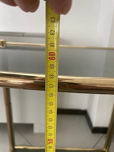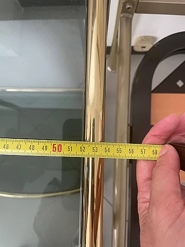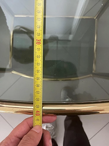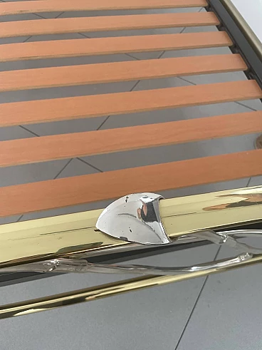 Letto matrimoniale e coppia di comodini in ottone e vetro, anni '70