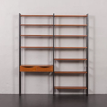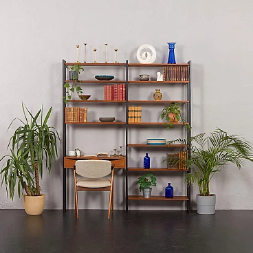 Libreria con scrivania in teak e metallo di Ollie Borg per Asko, anni '60