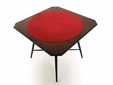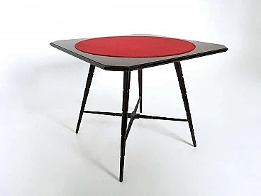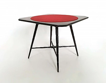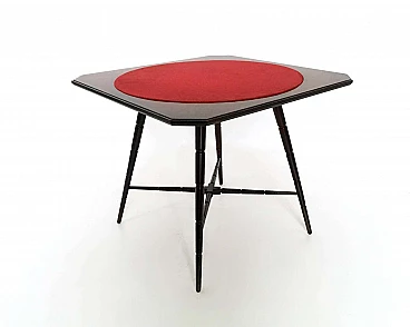 Tavolo da gioco in faggio ebanizzato con piano in tessuto rosso di Chiavari, anni '50