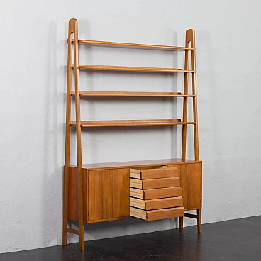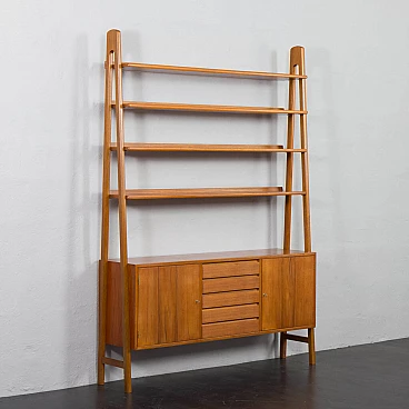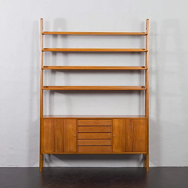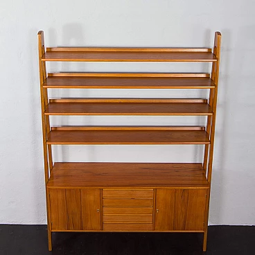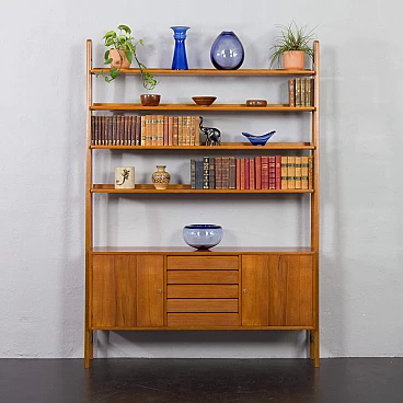 Libreria norvegese in teak con ante e cassetti, anni '60