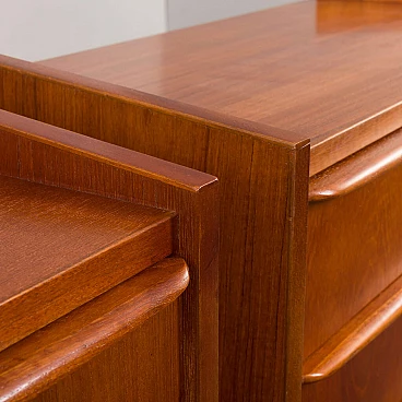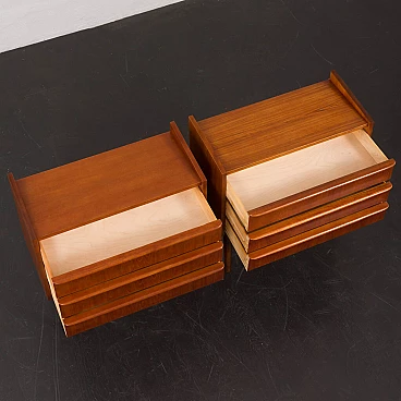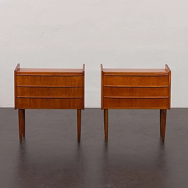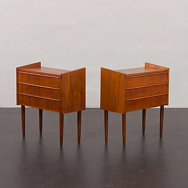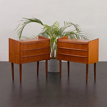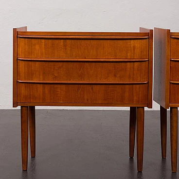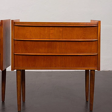 Coppia di comodini danesi in teak impiallacciato a tre cassetti, anni '60