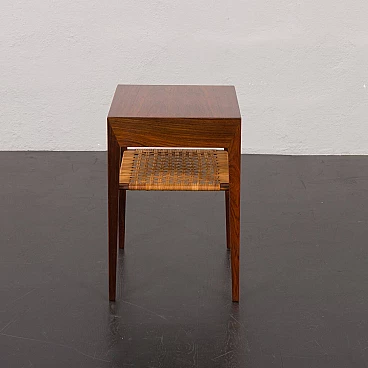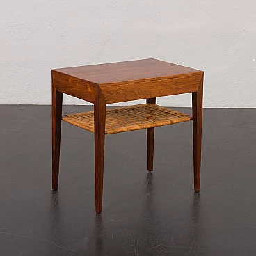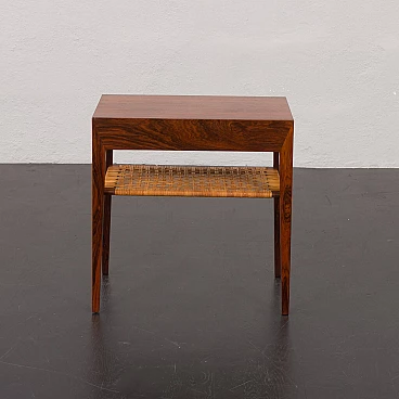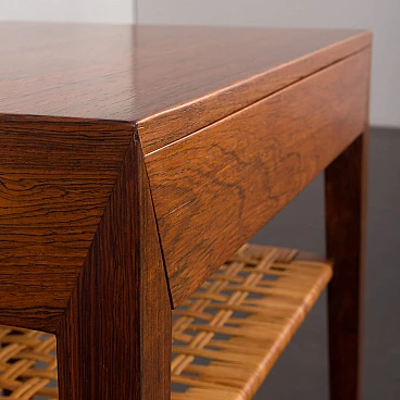Tavolino in palissandro e vimini di Severin Hansen per Haslev, anni '60