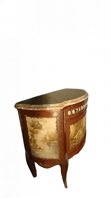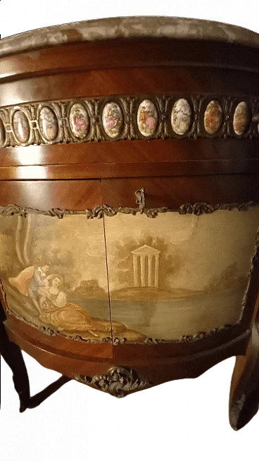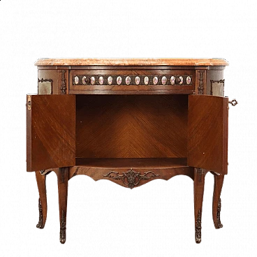 Credenza con piano in marmo rosa e decori in ceramica, anni '60