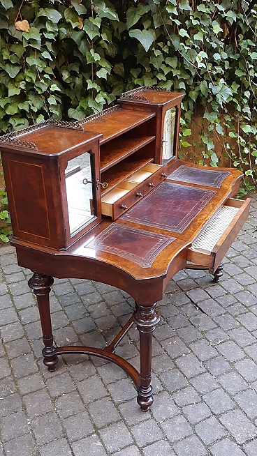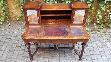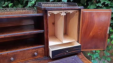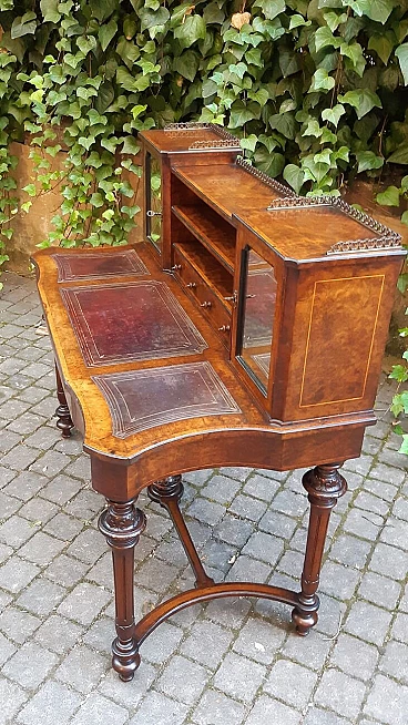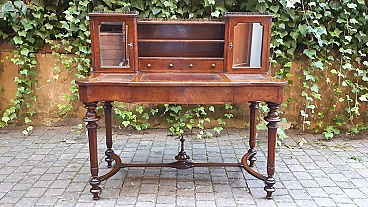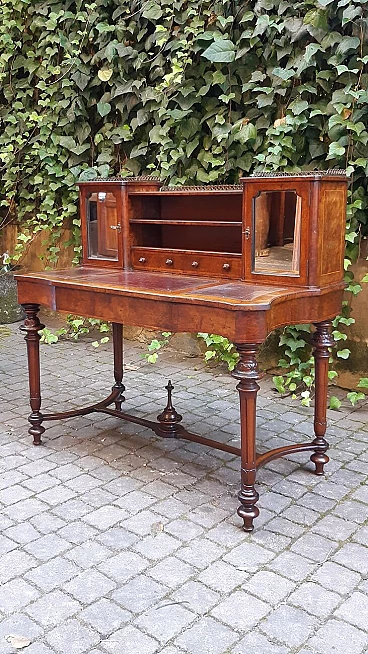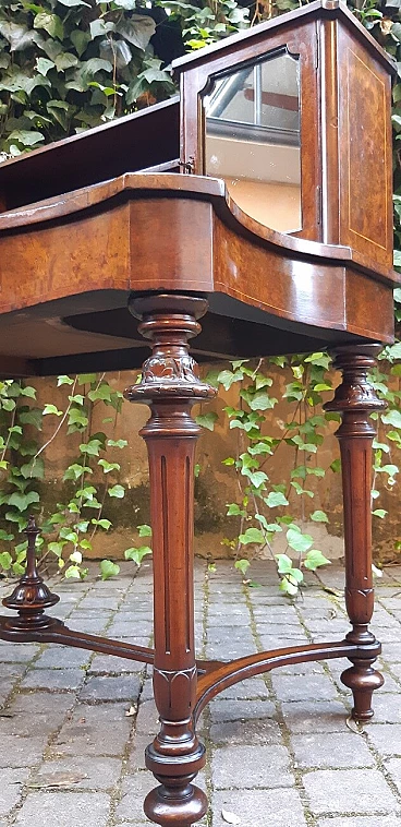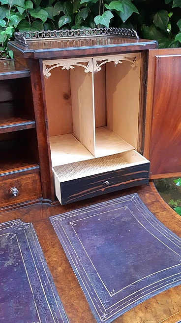 Scrittoio Napoleone III lombardo in radica di noce con alzata, '800