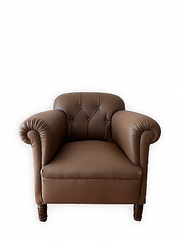 Poltrona in similpelle con braccioli in stile Chesterfield, inizio '900