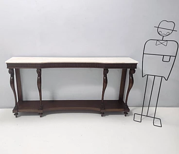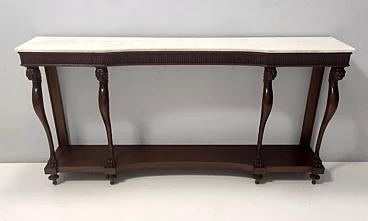 Consolle stile Neoclassico in noce, faggio e marmo di Carrara, anni '50
