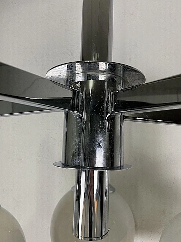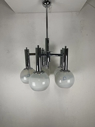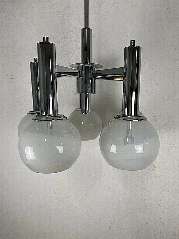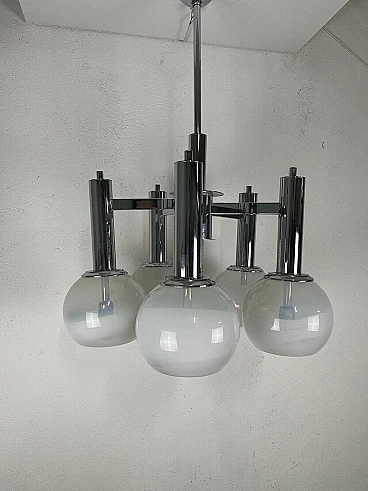 Lampadario a cinque luci in acciaio e vetro di Murano di Ettore Fantasia e Gino Poli per Sotis, anni '60