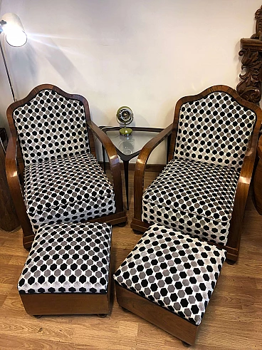Coppia di Poltrone con due poggiapiedi, art decò, anni '30