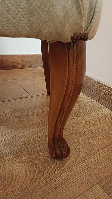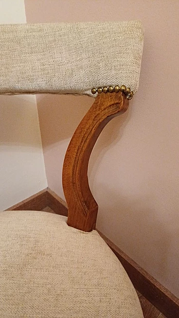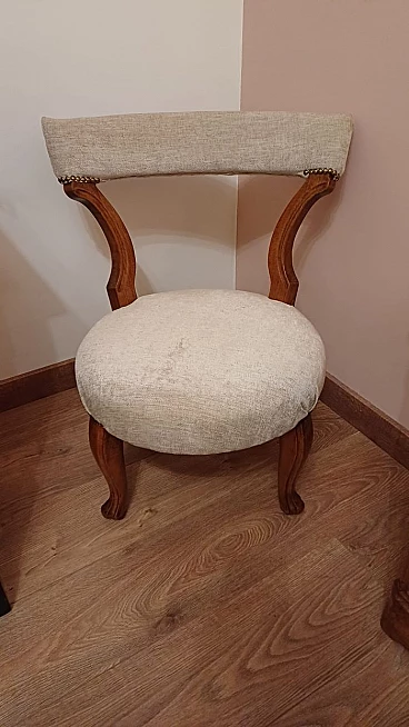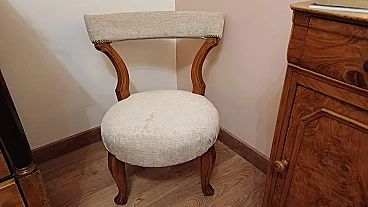 Poltroncina in faggio con rivestimento in cotone beige, metà '800