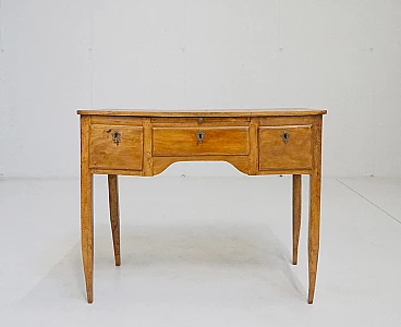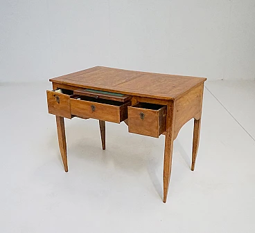 Scrivania in noce massiccio con tre cassetti e gambe a spillo, '700