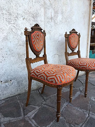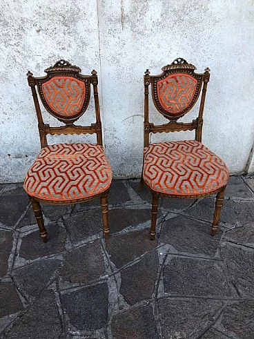 Coppia di sedie in noce con seduta in velluto, fine '800