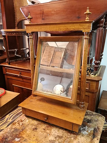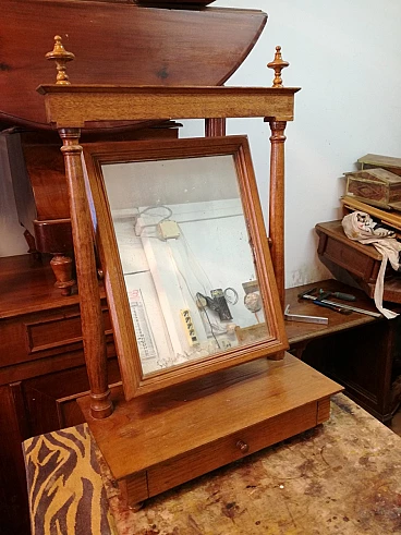Toelette da comò in rovere con specchio bascultante, fine '800